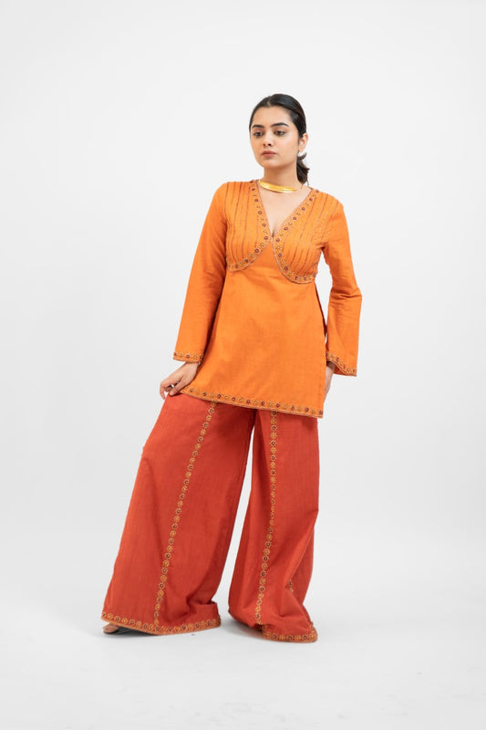 Rust orange embroidered palazzo set